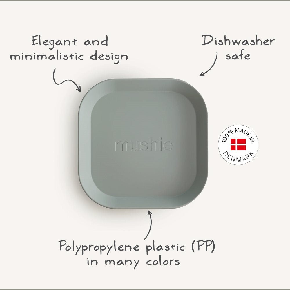 Нежни бои и едноставен но безбеден дизајн, овој сет за јадење вклучува две квадратни чинии. Направени во Данска од полипропиленска пластика без БПА, овие чинии се безбедни за вашите најмили и се лесни за одржување, со тоа што може да се перат во машина за садови и се безбедни за во микробранова.