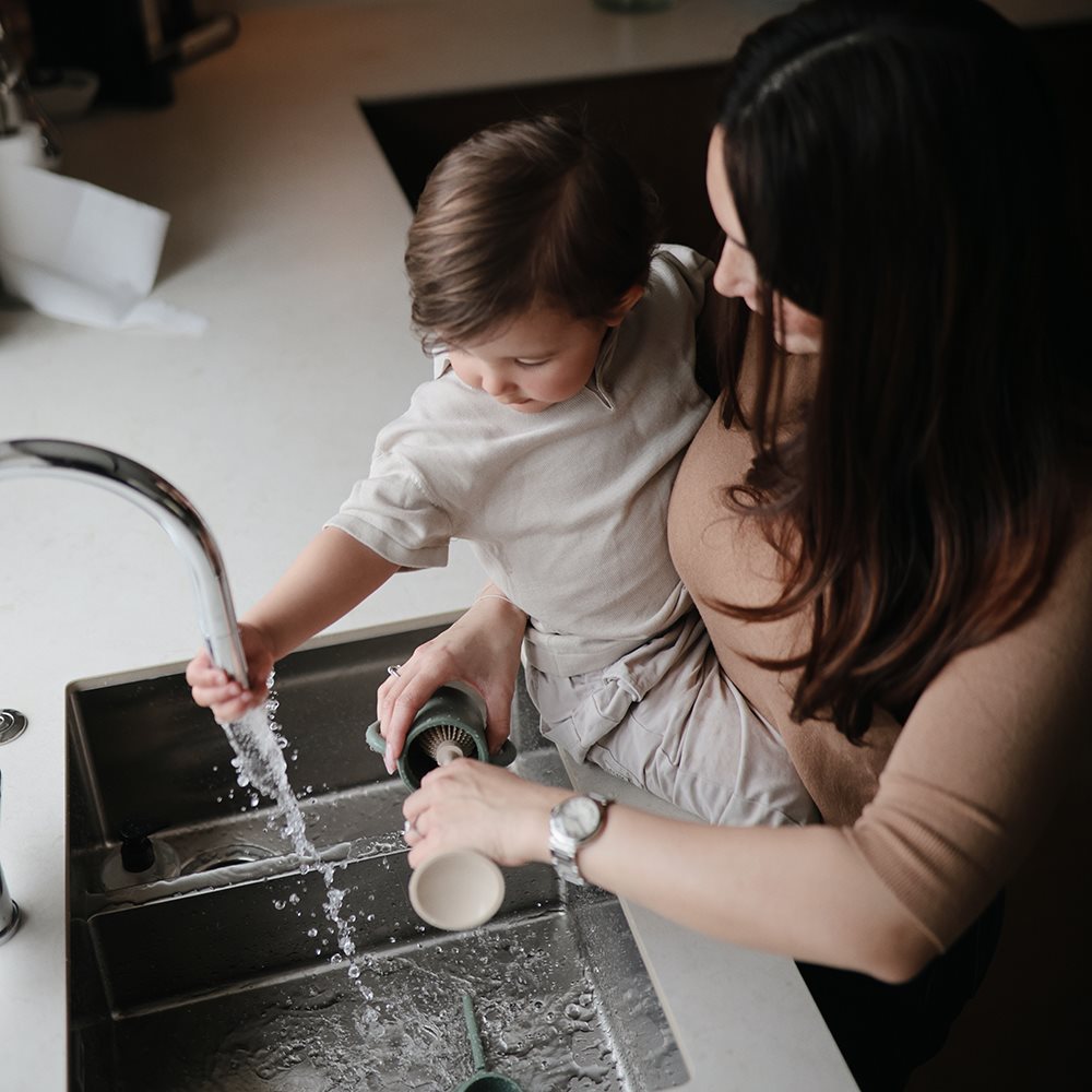 Главите на четките со разновидна големина се исто така одлични за чистење шишиња за вода и чаши.